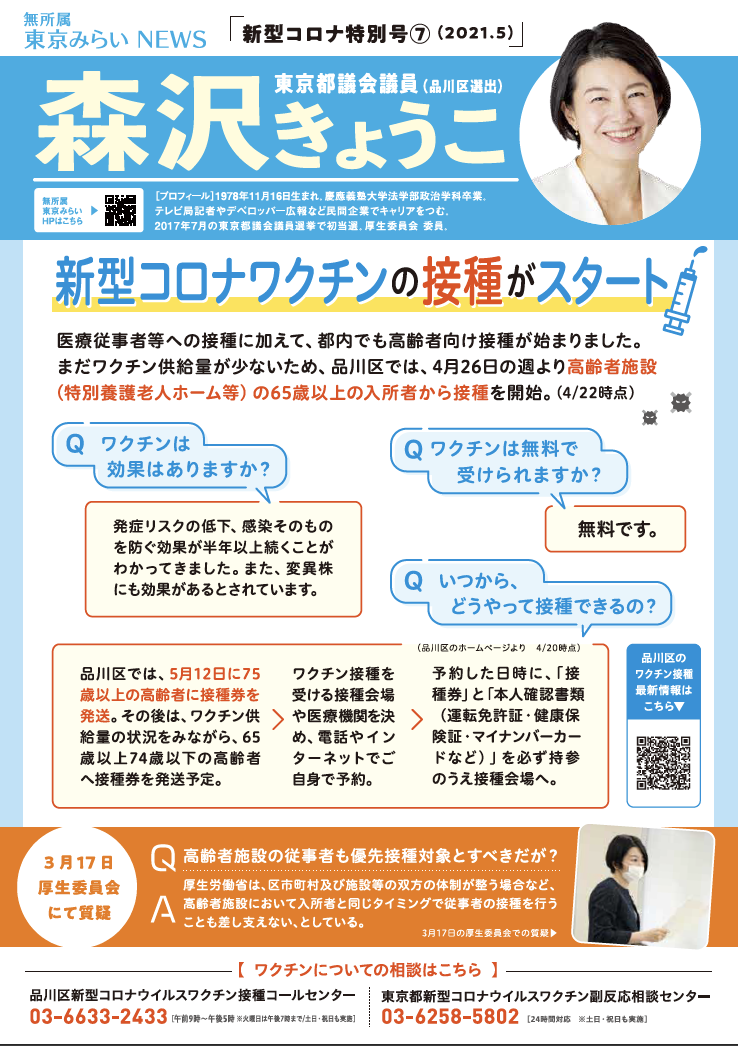 無所属 東京みらい NEWS 新型コロナ特別号⑦(2021年5月)