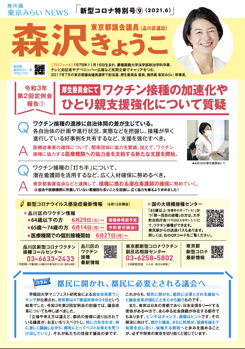 無所属 東京みらい NEWS 新型コロナ特別号⑧(2021年6月)